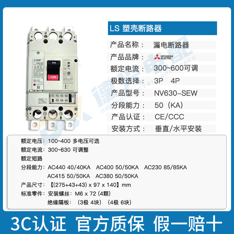 MCCB原装塑壳漏电断路器NV630-SEW 3P 300/400/500/600/630A