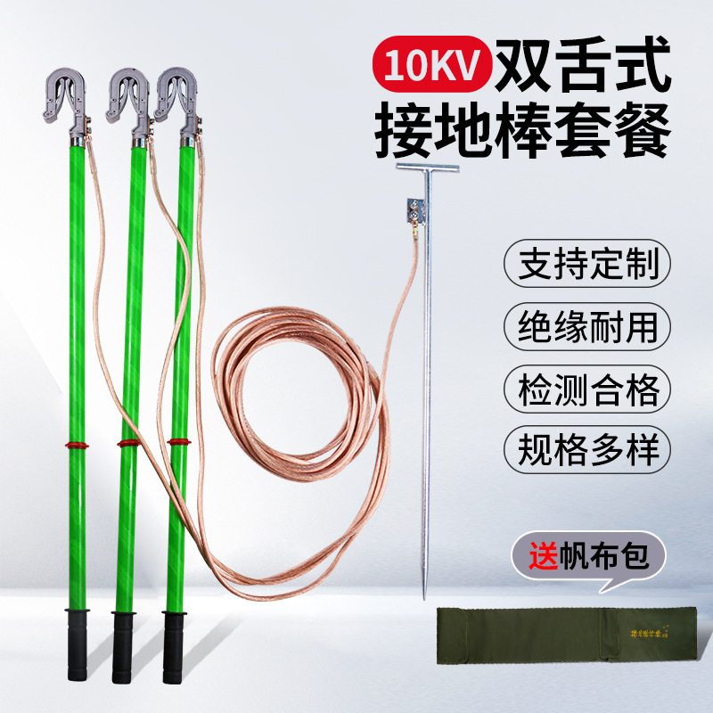 10kv高压短路双舌接地棒电站国标软铜接地线户外便捷型短路接地线