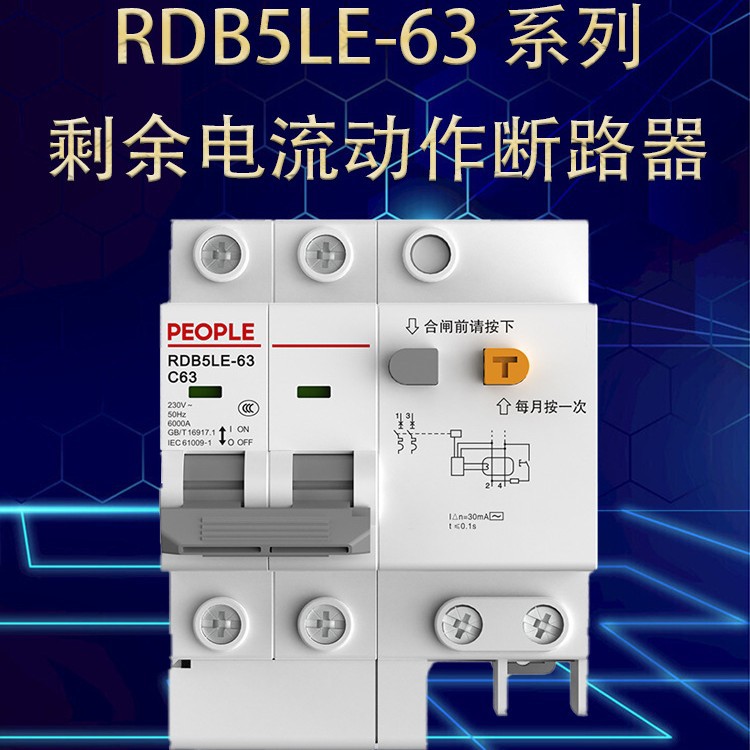 人民电器RDB5LE-63一体式剩余电流动作断路器家用漏电保护开关