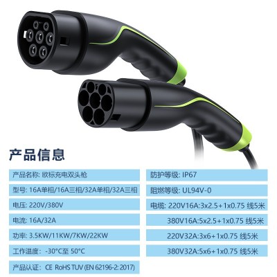 跨境专供欧标充电枪头、便携充电枪、充电枪线、充电枪头外壳 1条