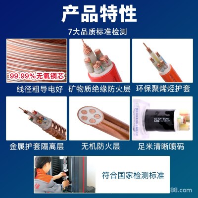 厂家批发柔性矿物防火电缆NG-A 2/3/45芯25 95 240平方铜芯电缆线 1米