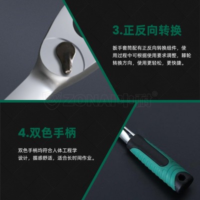 中耐 T系列1/4快速脱落棘轮扳手72齿6.3mm曲柄快扳 1把
