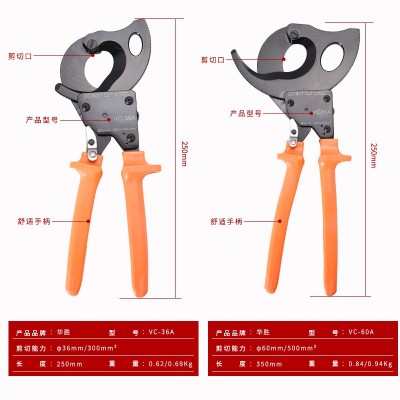 华胜工具棘轮式有齿轮手动电缆剪电缆钳断线钳子剪刀VC-36A/60A 1把