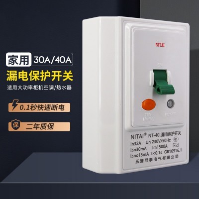 柜机空调电热水器专用86型漏电保护2P3P家用40A断路器空气开关 1只