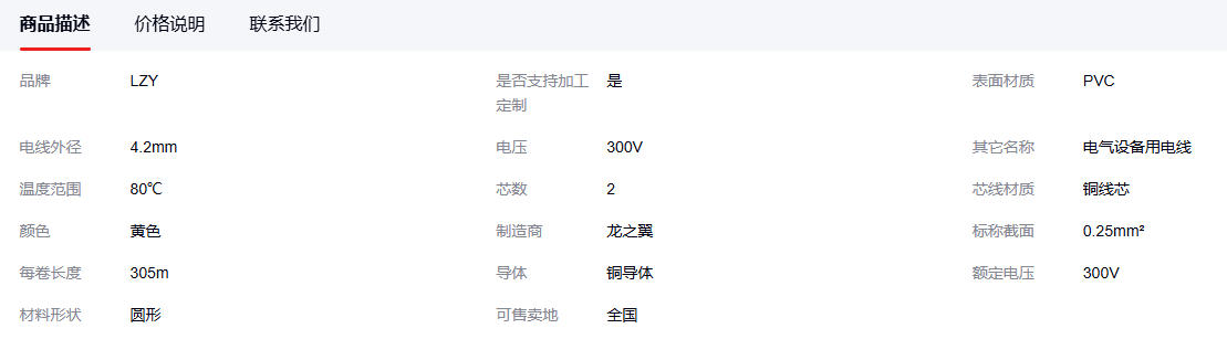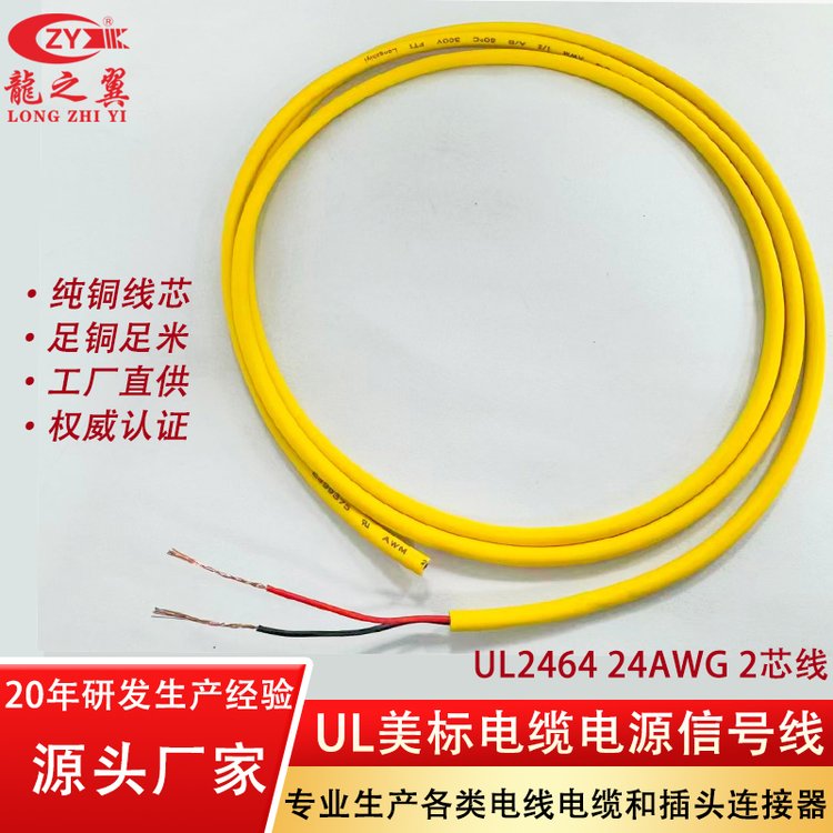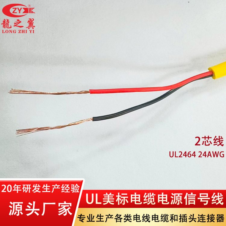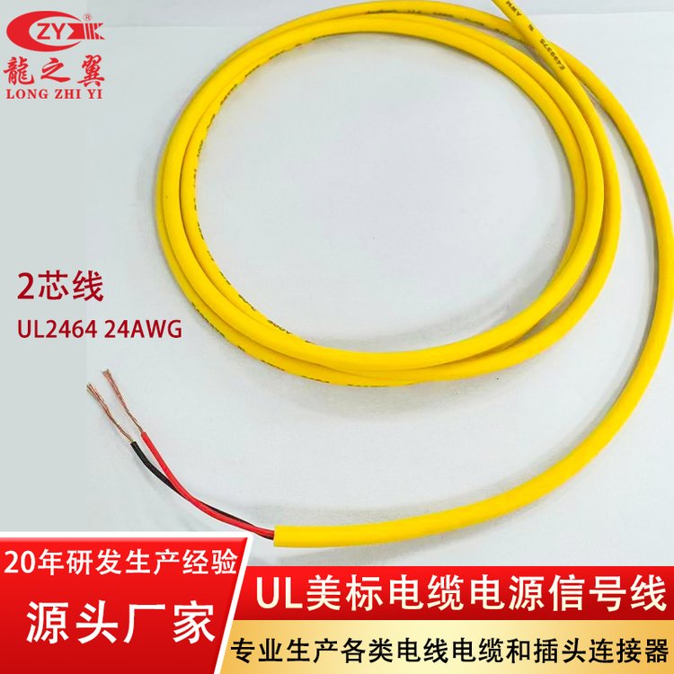 厂家直供多芯护套线UL美标2464 24AWG镀锡铜线材两芯电源线电缆 1卷