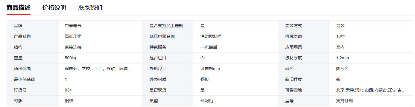 中泰电气消防电气柜高低压柜支持订制来图预定 1台