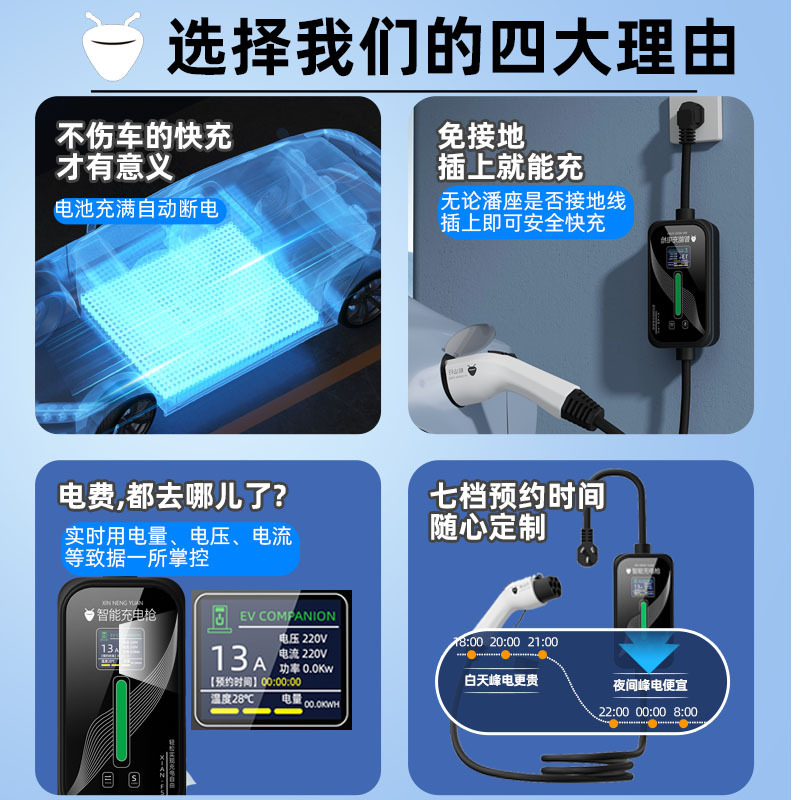 新能源电动汽车充电桩家用充电枪16A7kW比亚迪理想吉利随车充通用 1个