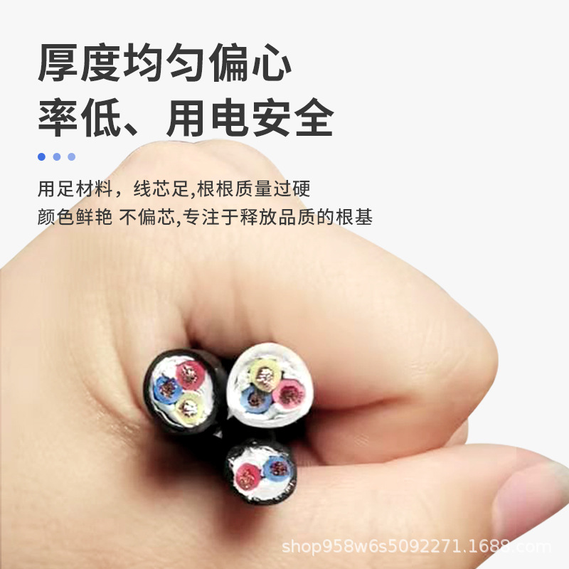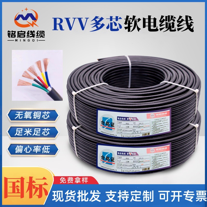 国标铜芯护套线2芯3芯4芯0.3 0.5 1 1.5 2.5平方RVV多芯软电缆线 1卷