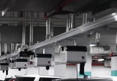 在江苏苏州一小区的地下停车场,一种新型可移动式的共享充电桩近日投入使用,一条导轨贯穿50个车位,机器人在导轨上穿行,抓取一台空闲充电桩,移动到刚刚停放的电动汽车后上方,车主取下充电枪即可为电动汽车充电。