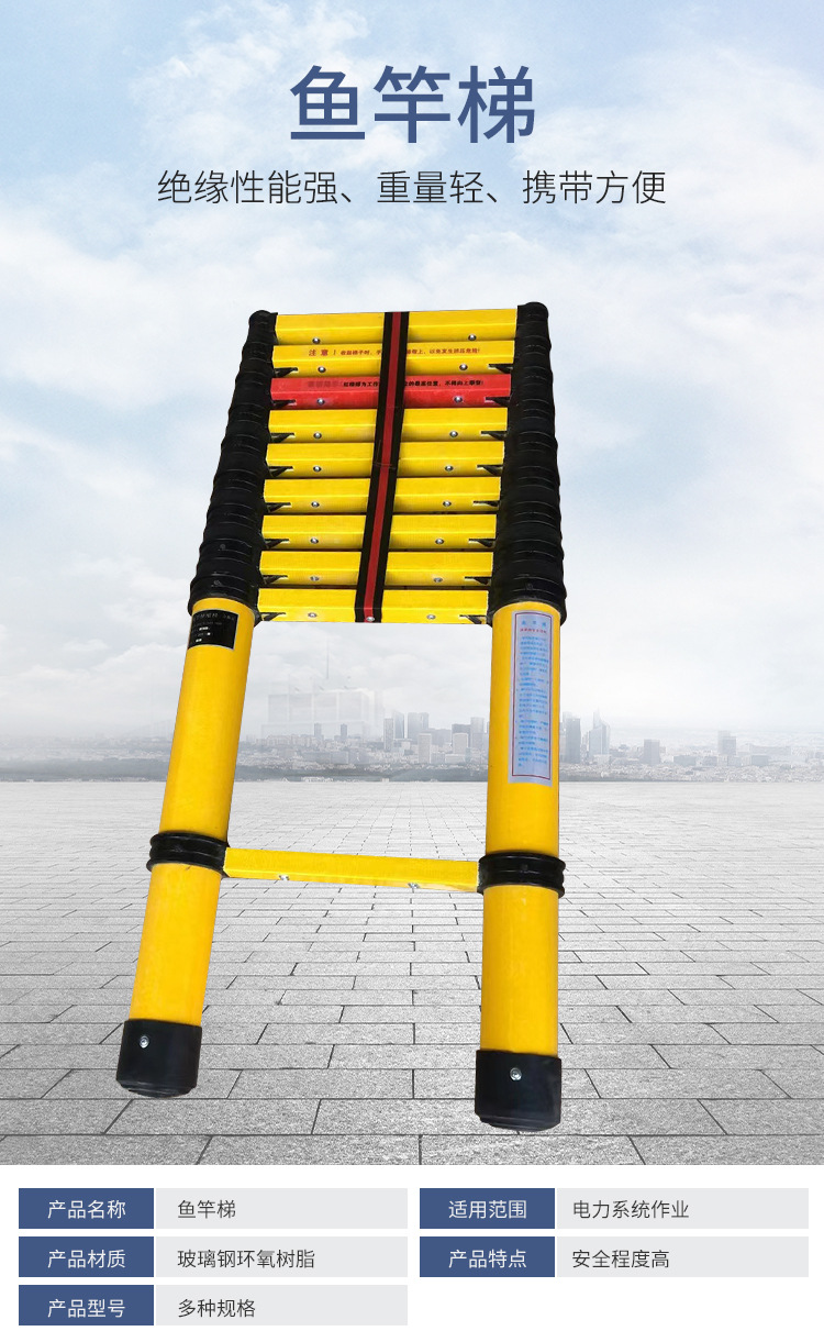便携式鱼竿梯 鱼竿伸缩梯子 绝缘梯玻璃钢电工施工单直鱼竿梯