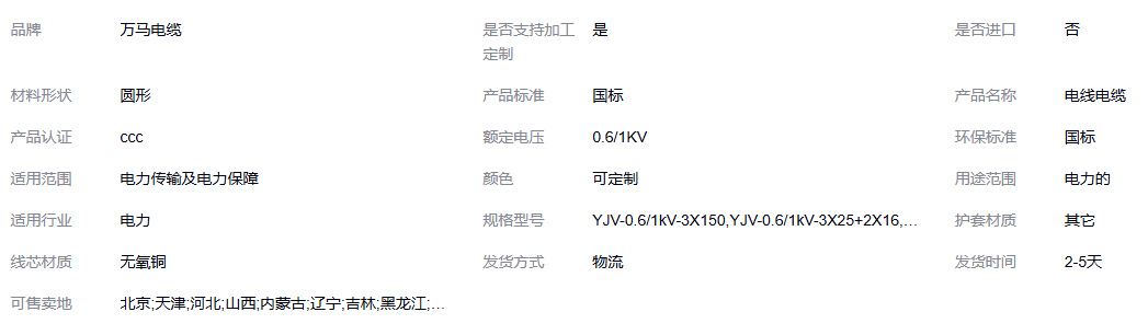 万马电缆低压电力电缆YJV-0.6/1kV铜芯硬线充电桩电 缆厂家批发