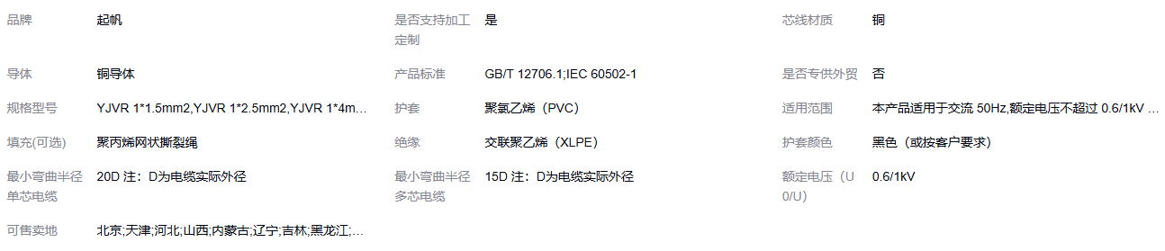 【起帆电缆厂家直供】YJVR 1芯/2芯1.5至400平方国标铜芯电力电缆