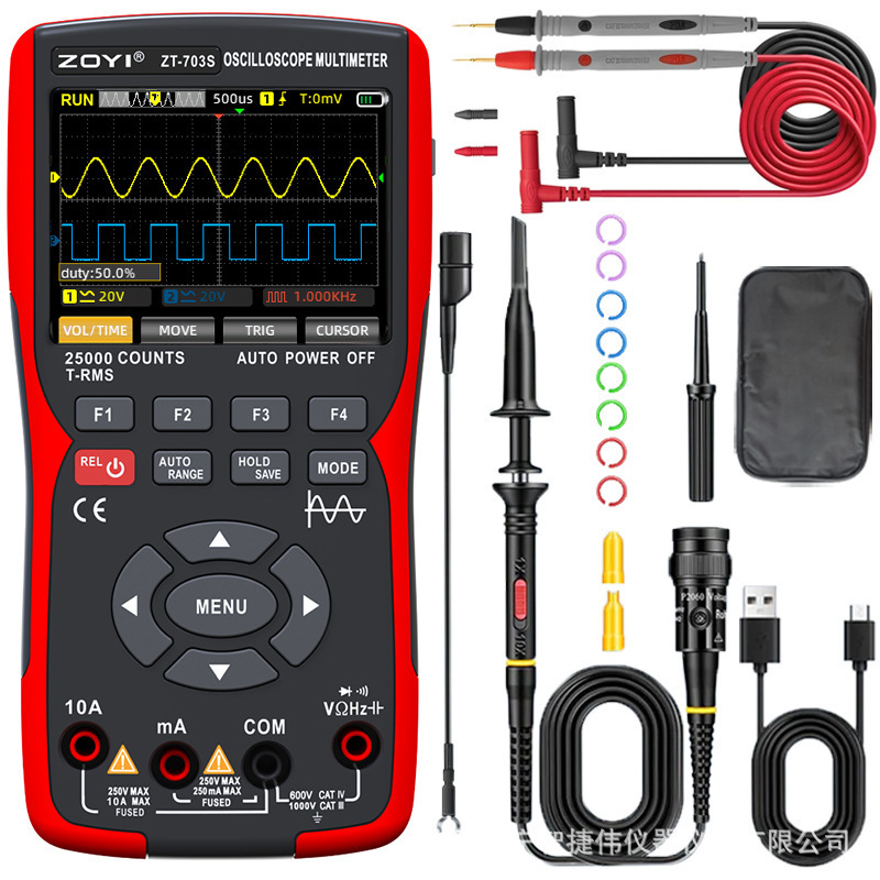 众仪ZT703S示波器万用表 高精度双通道50MHZ数字示波器信号源汽修