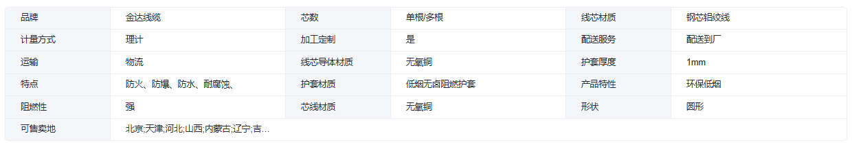金达线缆RVV环保低烟信号线 钢芯铝绞线无氧铜芯