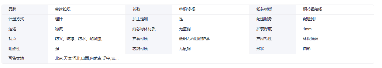 金达线缆RVV环保低烟信号线 钢芯铝绞线无氧铜芯