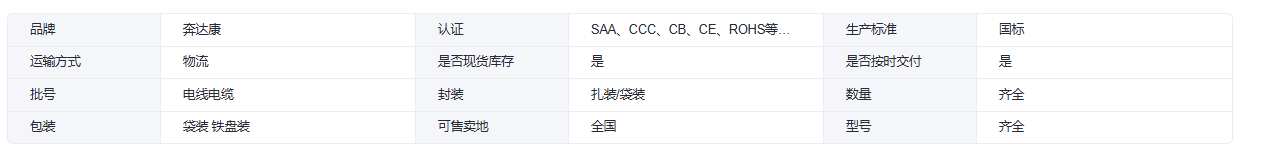 奔达康 电线电缆 抗应力 高绝缘 易成型 一站式供应省心