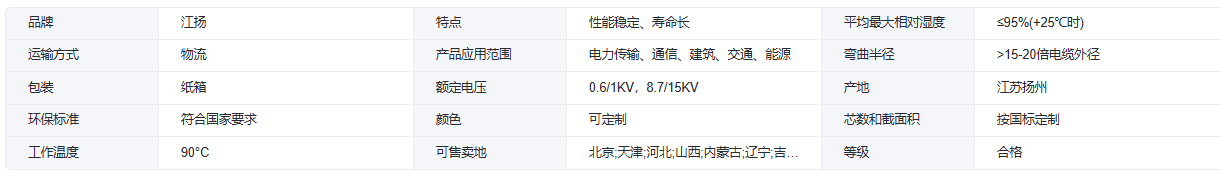 江扬 10KV中压电力电缆 不易发热 防腐蚀性 结构多样化 耐冻