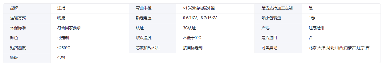 江扬 10KV中压电力电缆 不易发热 防腐蚀性 结构多样化 耐冻