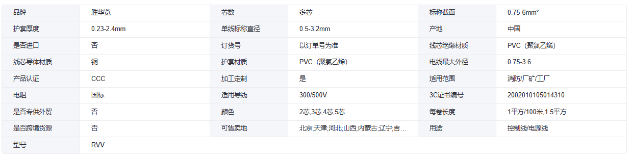 RVV铜软护套线 1/1.5/2.5平方 2/3/4/5芯 胜华厂商定制