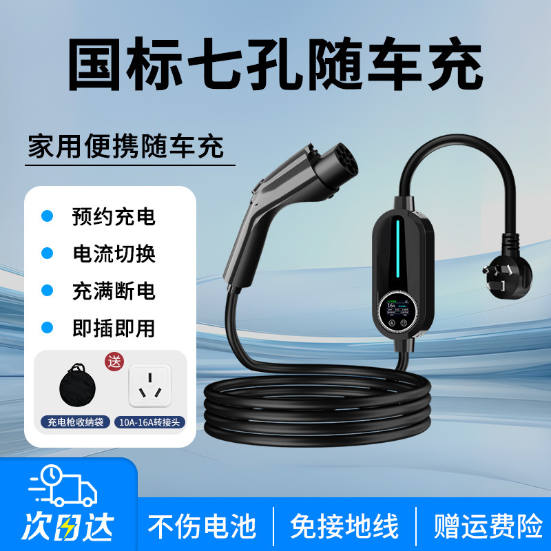 7kw新能源充电枪电动汽车比亚迪随车充北汽便携式特斯拉16A充电枪