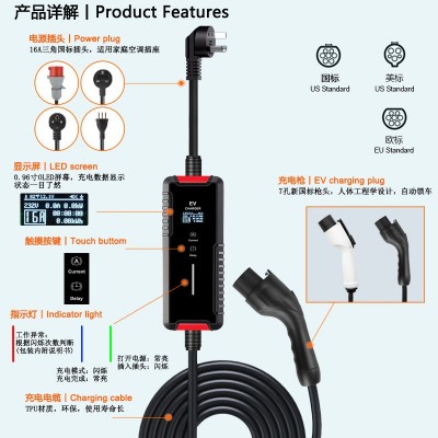 16A国标新能源电动汽车充电枪家用便携式交流充电桩随车充电器7KW