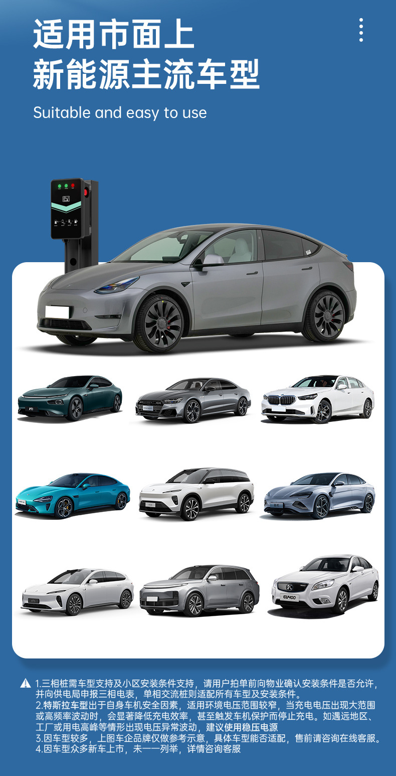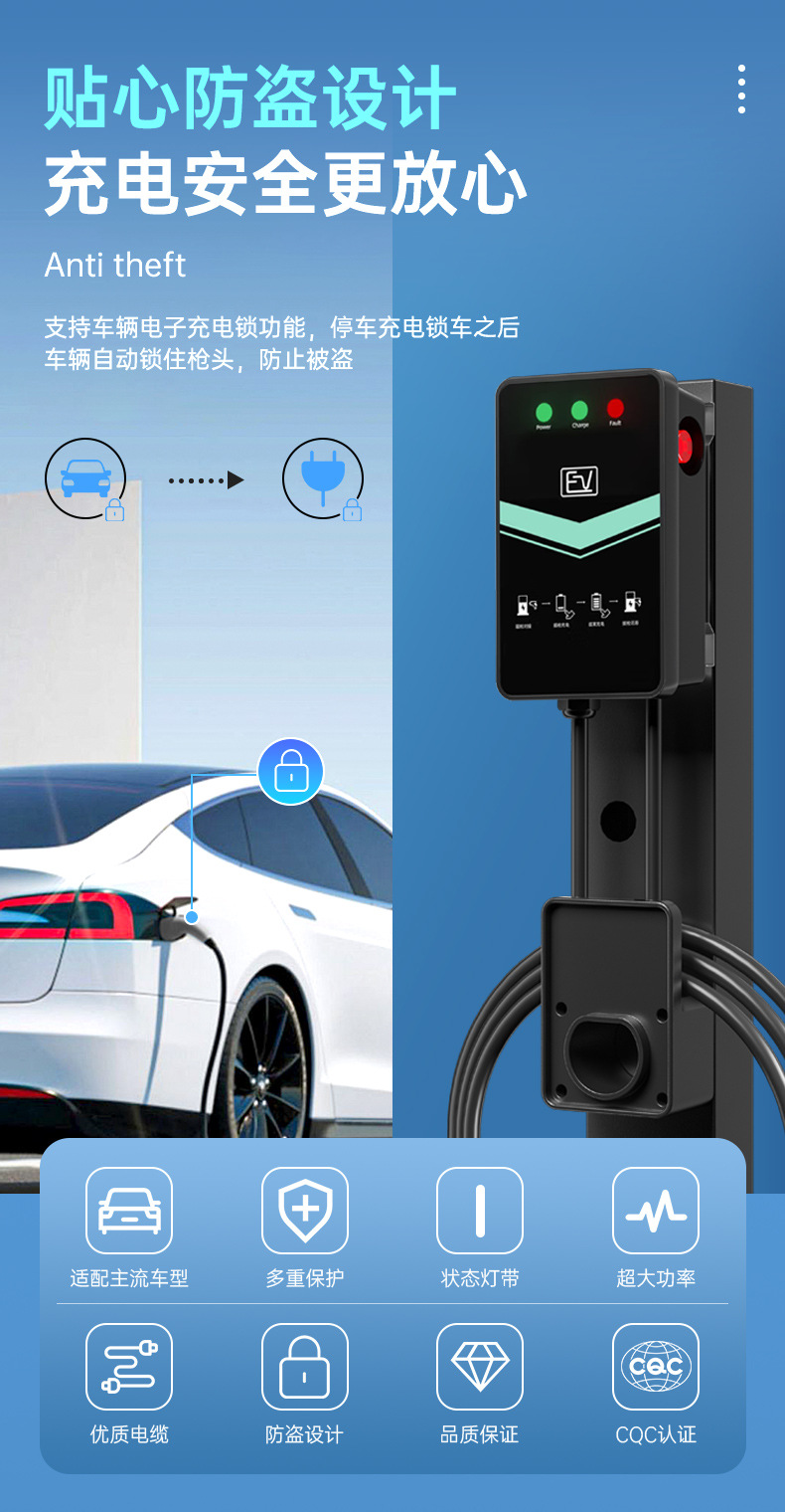 充电枪交流充电桩壁挂32A7KW快充新能源电动汽车家用交流桩