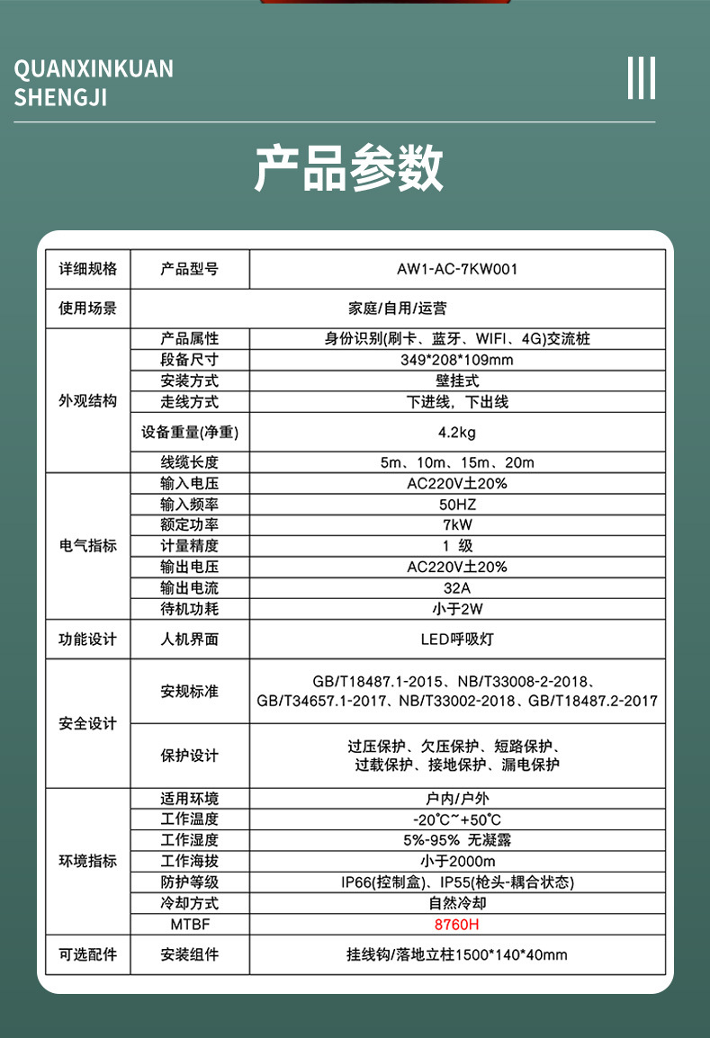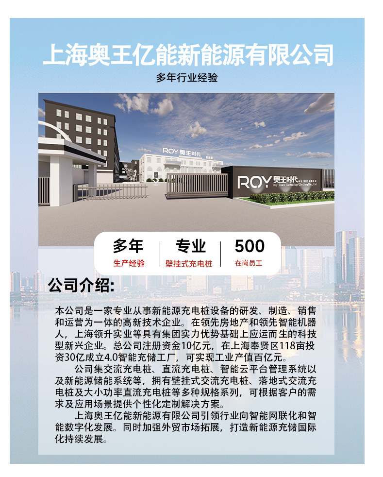 ROY奥王升级款新能源汽车通用7KW充电桩交流桩厂家供应批发