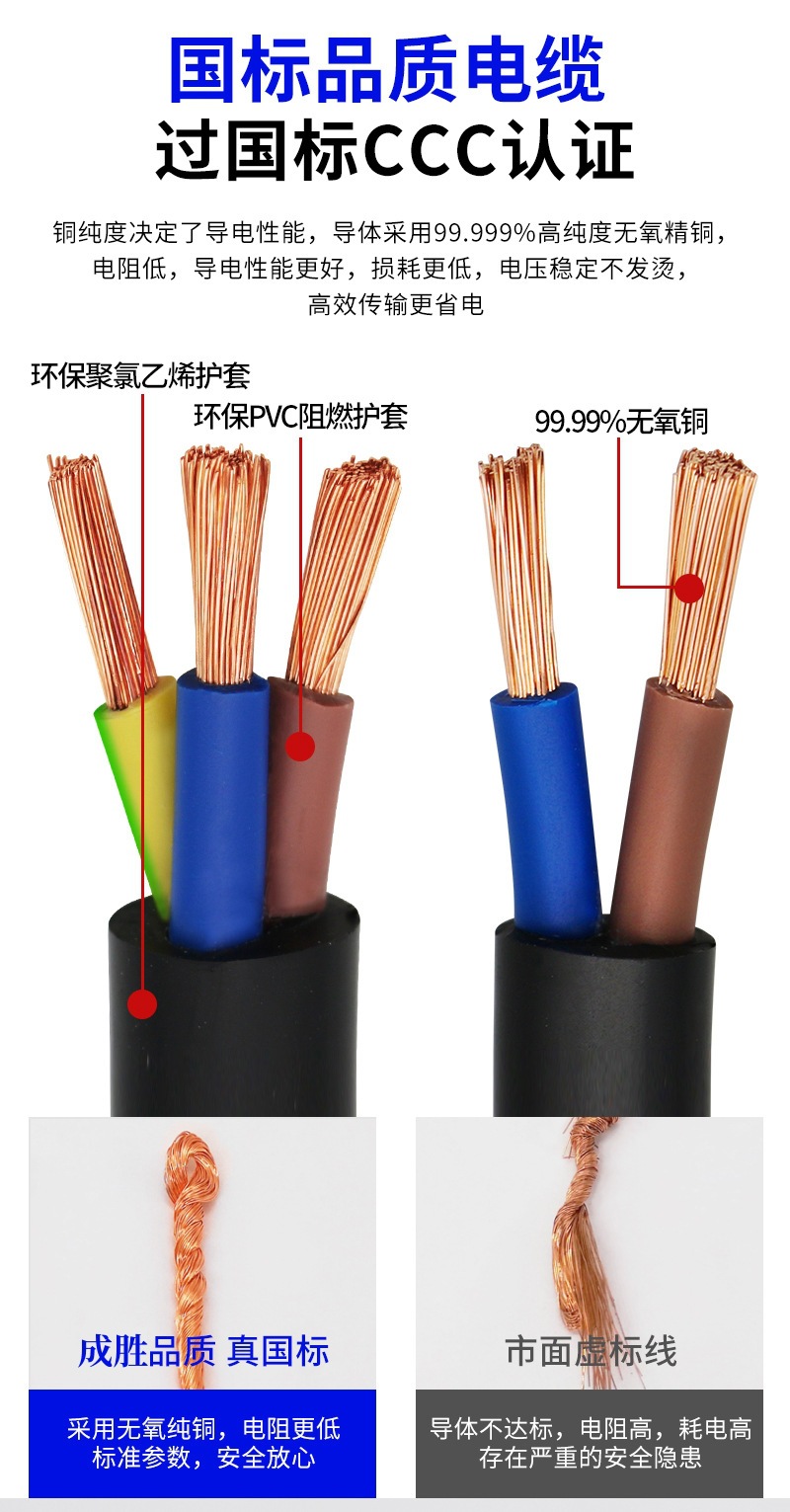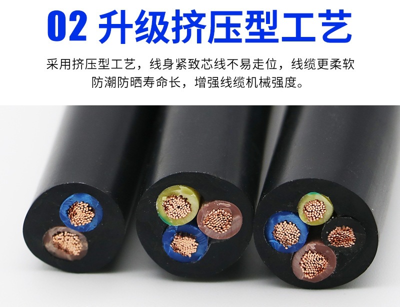 黑色电源线 国标防水铜芯RVV2芯3芯1.5监控控制线软线电源线