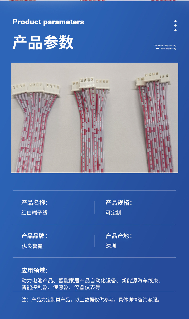电子电器配线新能源线2.0红白排端子线2一10P接插连接器排线