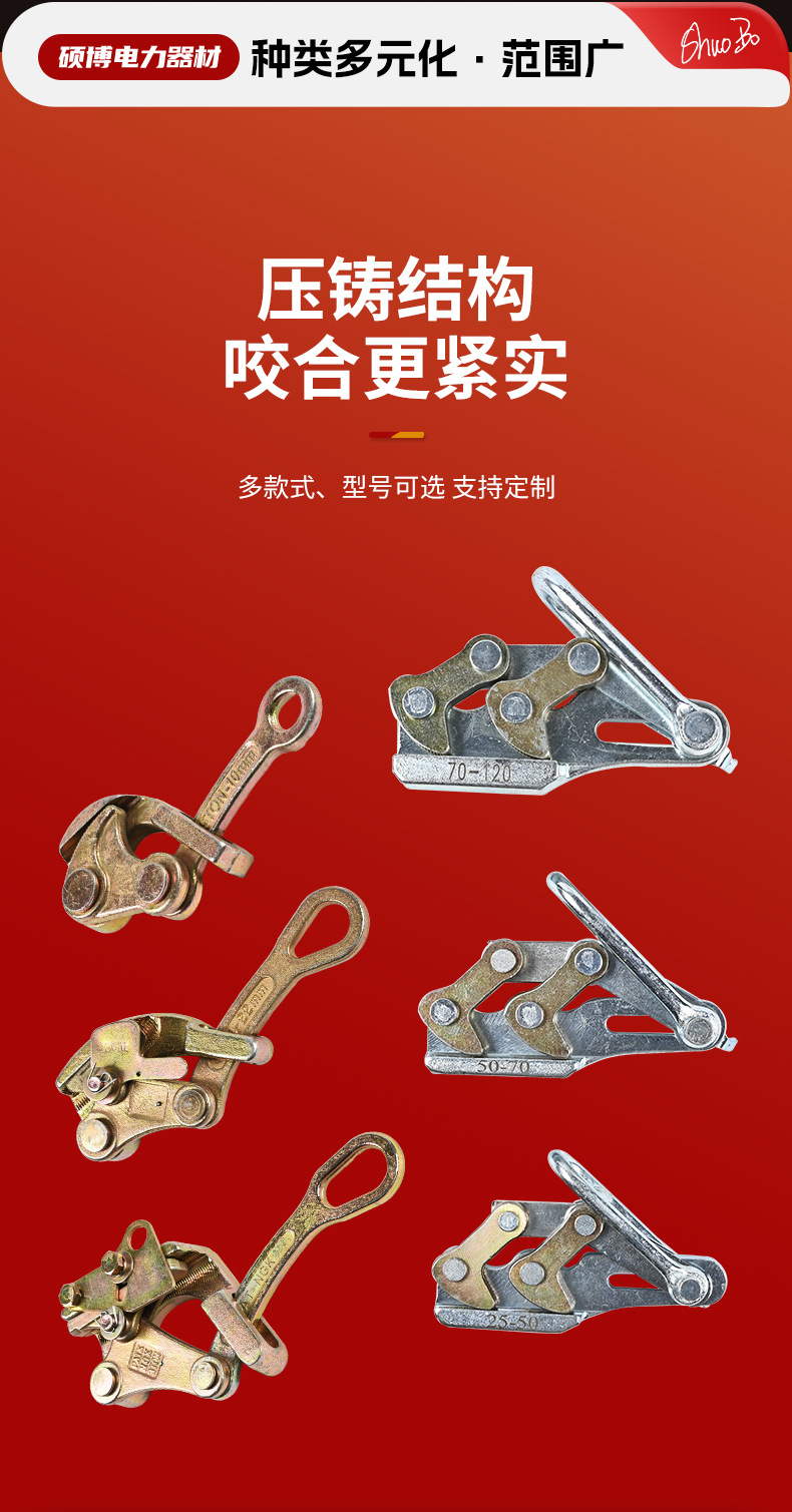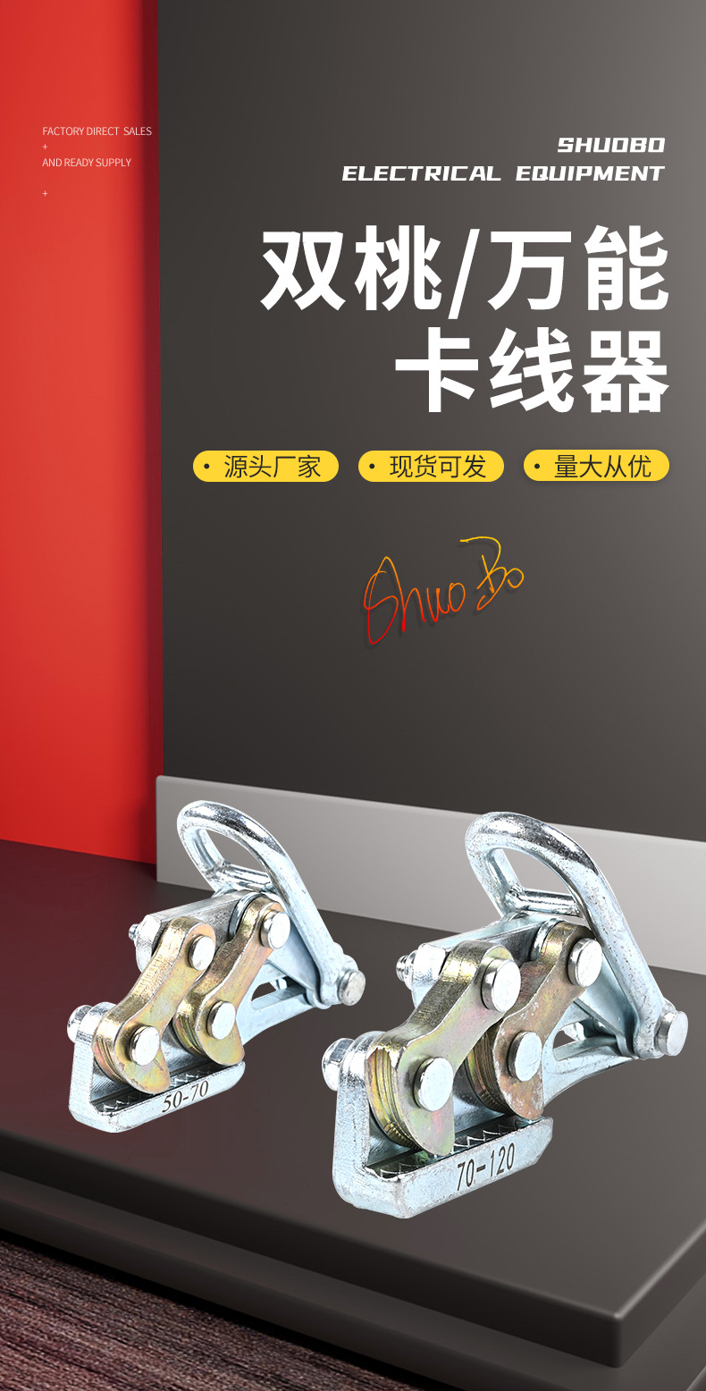 现货批发万能卡线器牵引器卡线器 双桃卡线器 钢丝绳夹头拉绳器