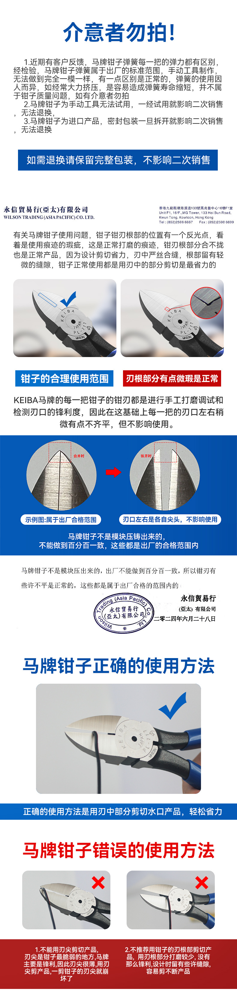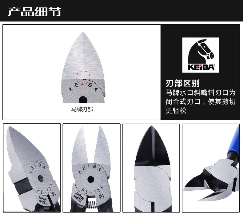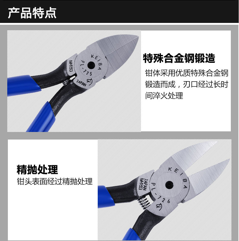 原装正品日本KEIBA马牌PL716/724/725/726水口钳铬钒合金钢水口钳