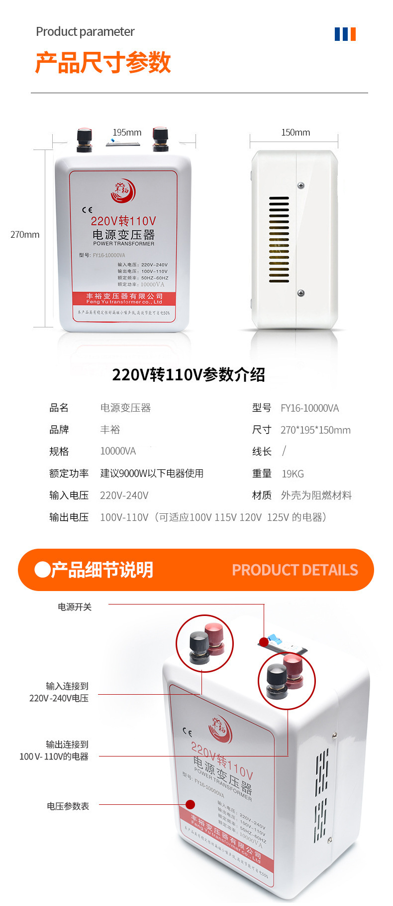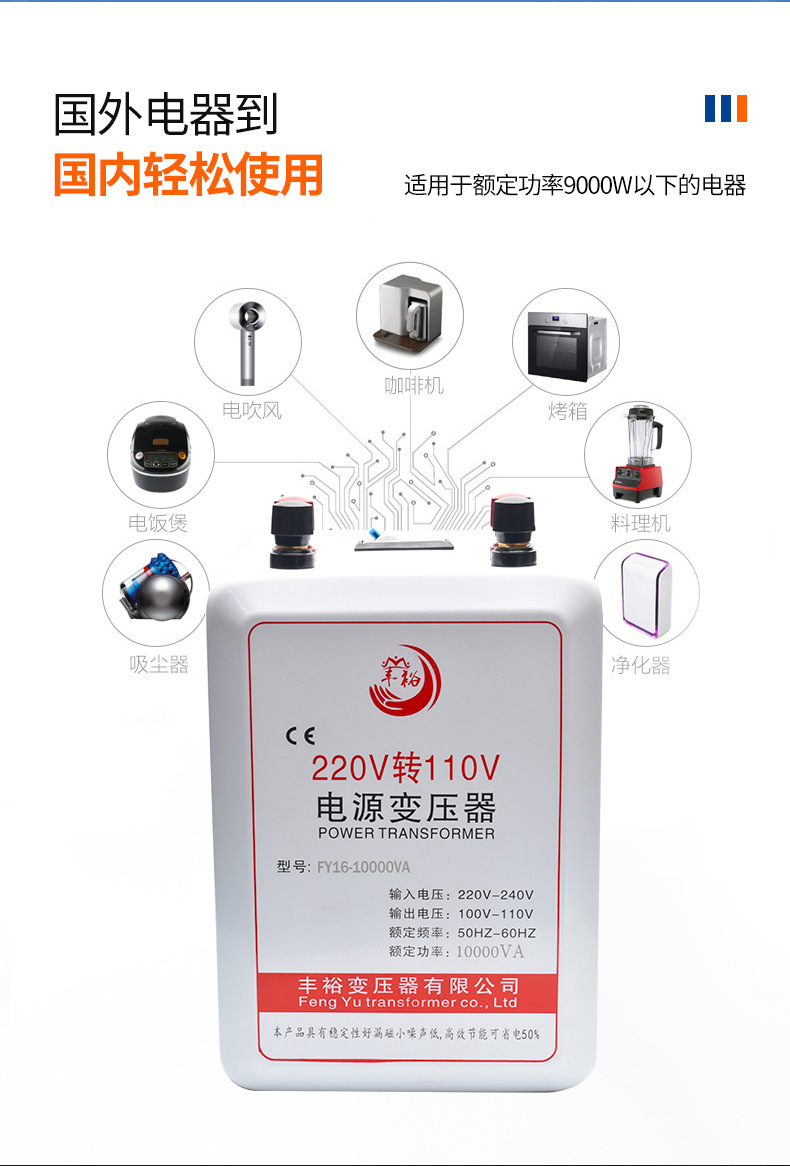 丰裕电源变压器220v转110v海淘110v电器用电压转换器10 000w变压