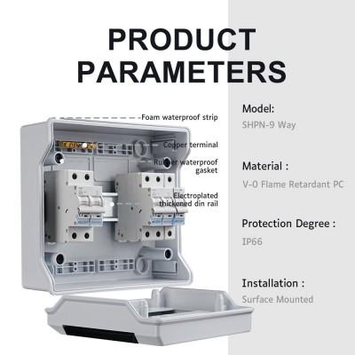 SH-9 way防水IP66明装PC塑料配电盒小型断路器9回路工厂配电 箱c e