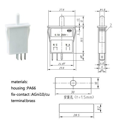厂家销售可批发电冰箱门灯制冷设备酒柜常闭式门控按钮式 行程开关