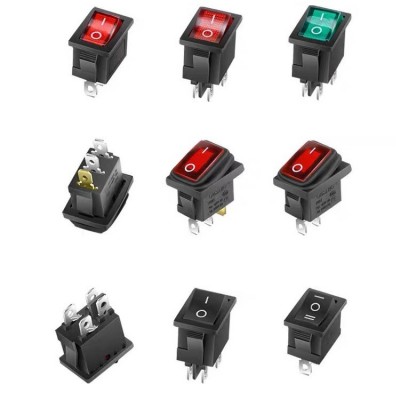 电源开关防水KCD1翘板开关4脚带蓝灯电热锅开关船型开关二脚二挡