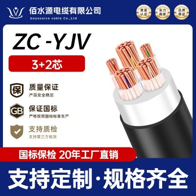 ZC-YJV国标电缆铜芯3+2芯0.6-1KV多股无氧铜耐火阻燃工程电线电缆