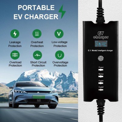 新能源汽车充电器欧标32A电动汽车充电枪7KW免接地带蓝牙APP控制