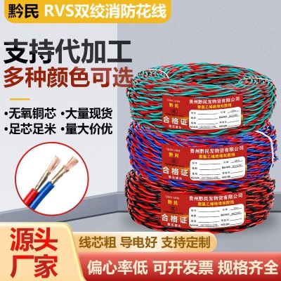 纯铜消防双绞花线电缆ZR-NH-RVS2芯家用0.75-6平方灯头线信号电线