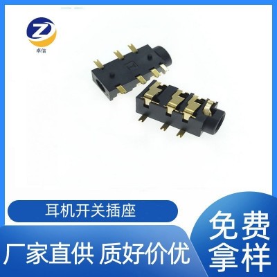 厂家直供声卡耳机插座四角贴片开关PJ399YD镀金 带开关组音频插座