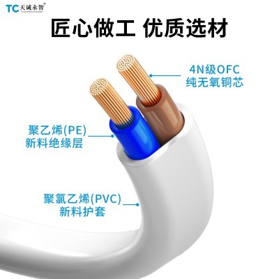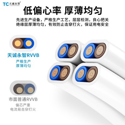 无氧铜RVVB白色扁形护套电线2芯0.75 1.5 2.5 4平方家用平行线100