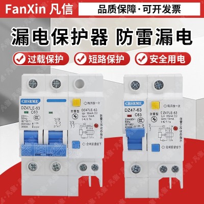 【正品】防雷漏电断路器家用2P空气开关带漏电保护器63a32A防触电