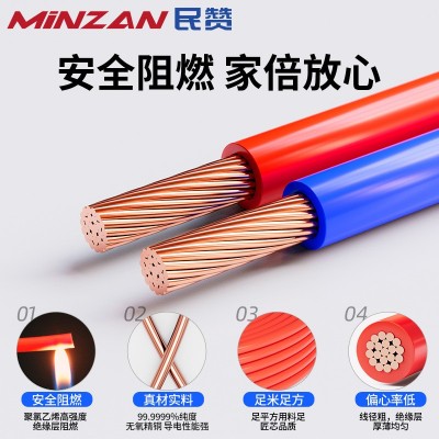 民赞国标电线BVR25 35 50 70平方多股软线家装工程阻燃铜芯电线