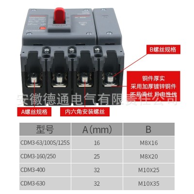 德力西塑壳断路器CDM3S-125S(新)壳体三相电3P4P空气开关