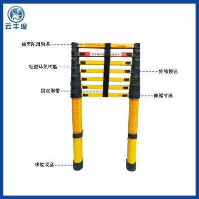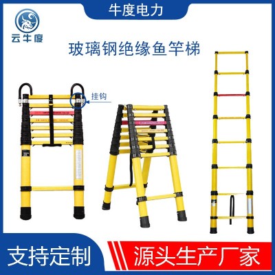 玻璃钢绝缘伸缩鱼竿梯电力电工检修升降人字梯竹节单直梯 通信爬梯
