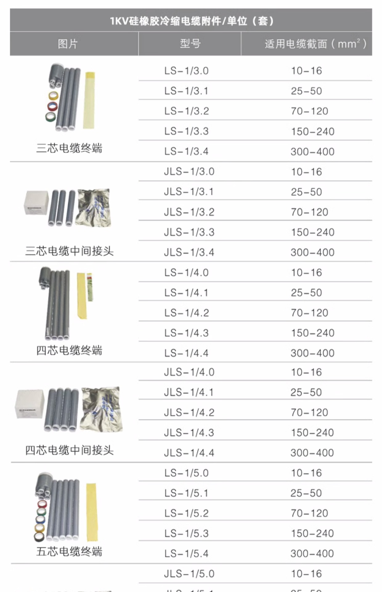 民熔1kv低压冷缩电缆终端头LS-1/3.1 4.1 5.1三/四/ 五芯光伏专用