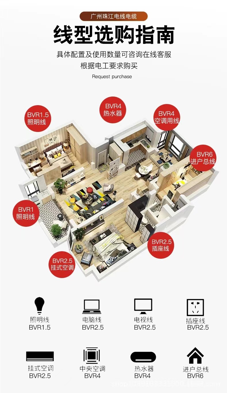 广州珠江电缆ZC-BVR多股软线1./2.5/4/6平方铜芯家装阻燃国标电线