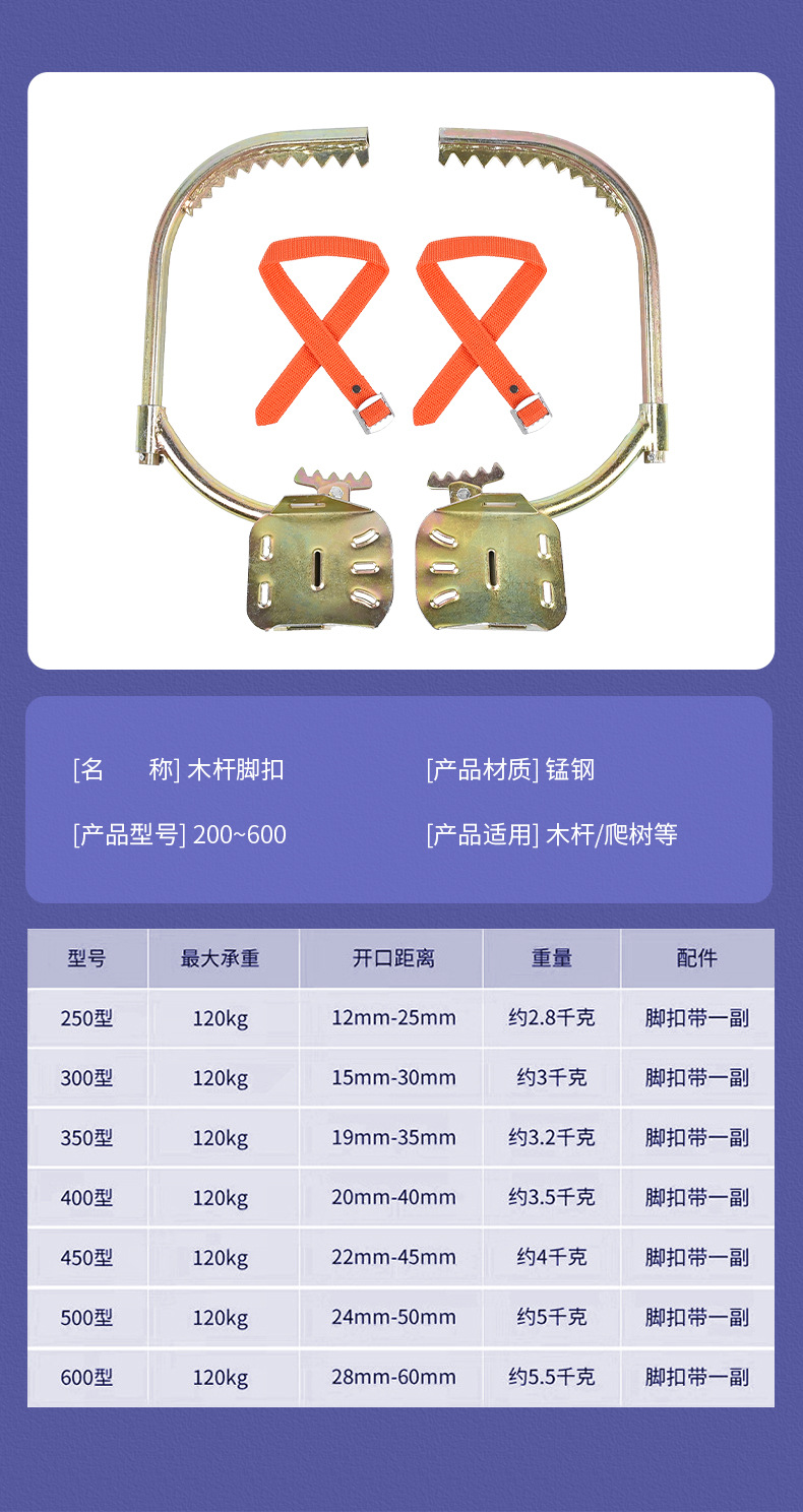 高空作业脚扣登高杆防滑作业爬树高空登通讯脚扣爬杆铁鞋转向脚扣