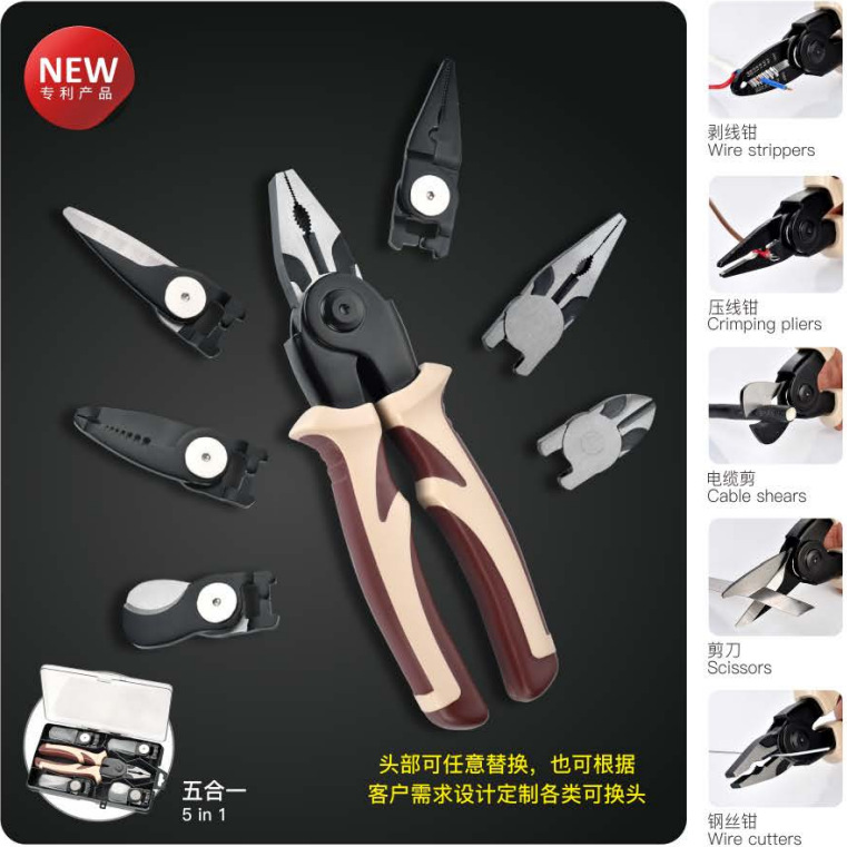 宁波鑫箭 新品 五合一 可换头钳组套 带盒 五个头SJ8029