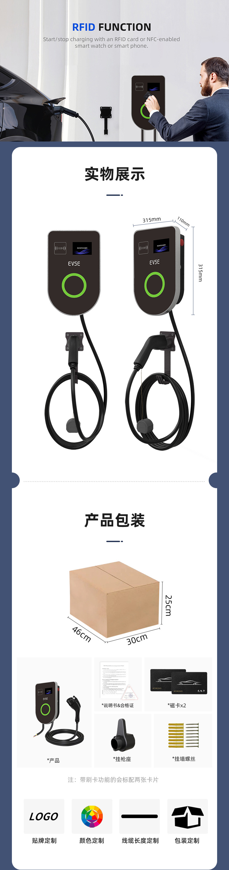 新能源充电桩7kw家用交流桩汽车充电器 随车充电桩美标J1772